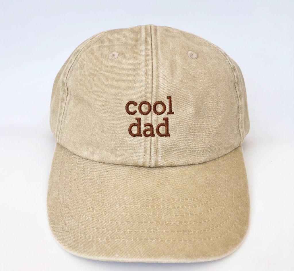 - Bonés com bordado "cool dad", "COOL DADS CLUB" ou "World's Greatest Dad"